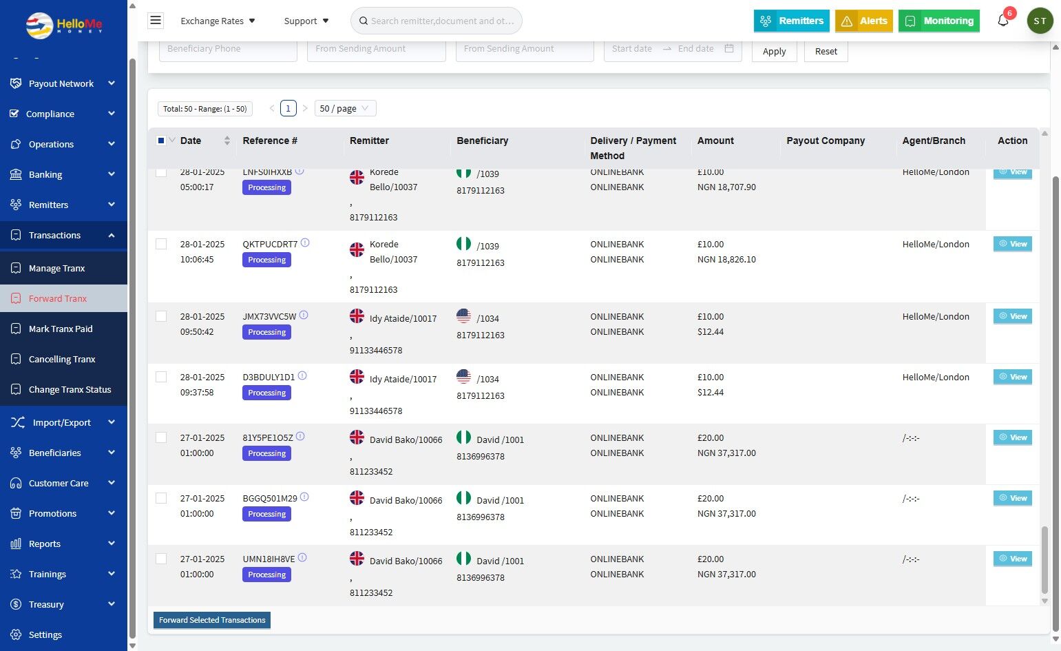 4. After selecting the transactions, the user should click on 'Forward Selected Transactions', as marked in the image below.