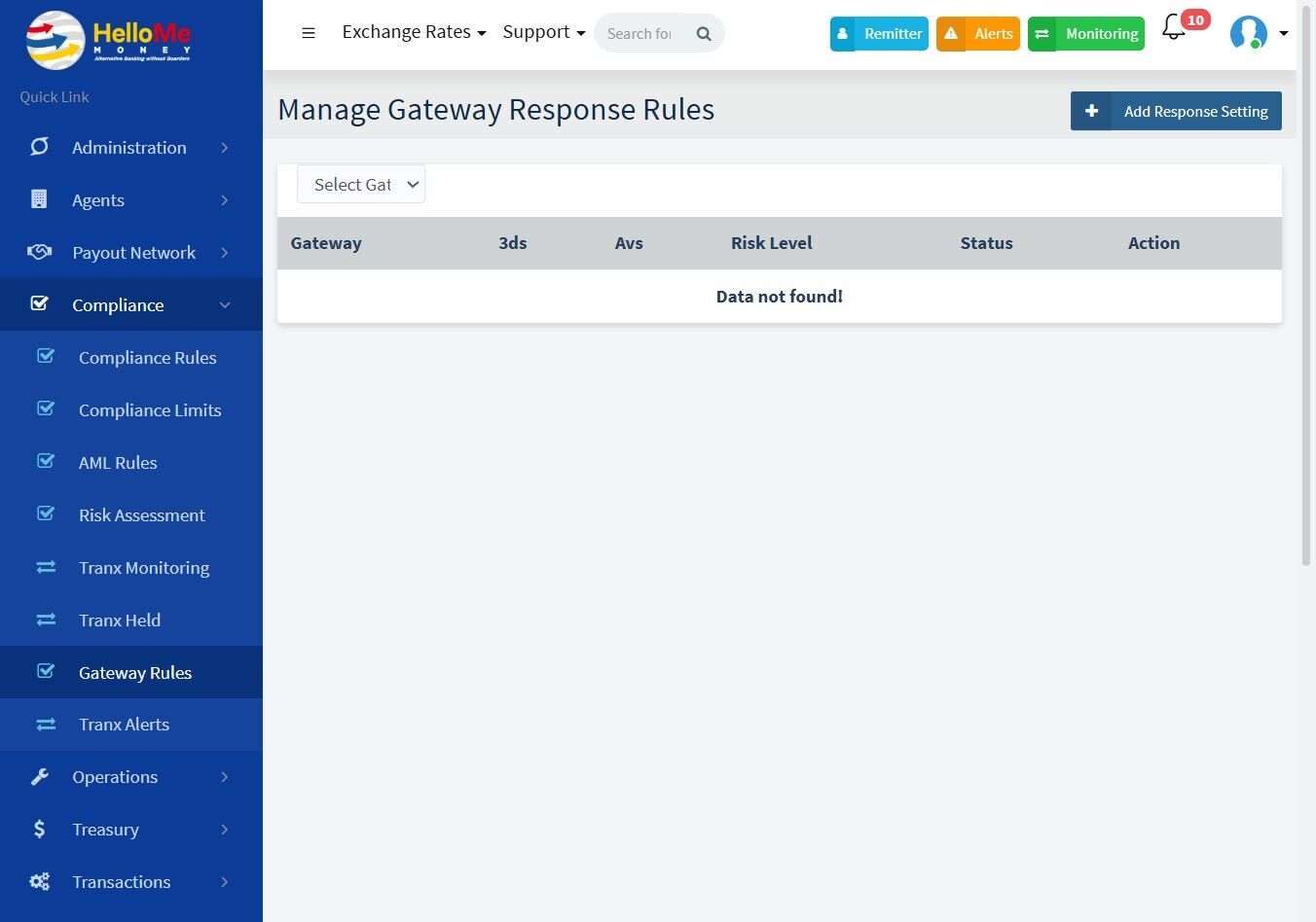 The Gateway Response Rules module enables HelloMe to apply its own decision-making logic based on these responses. Instead of accepting the gateway result as-is, the system uses internal rules to allow, block, or hold a transaction.